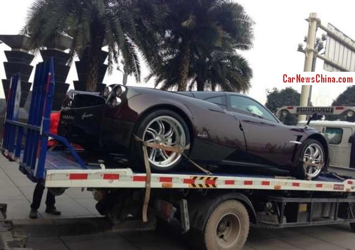 The very first Pagani Huayra has arrived in China. The purple super car was Spotted in China in front of a hotel in the great city of Chongqing. The Pagani reportedly belongs to the owner of the hotel who also has a speedy Ferrari F12berlinetta wrapped in matte gold.